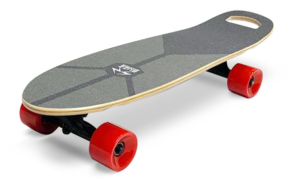 Электроскейт начального уровня. Отлично подходит для детей и легких взрослых. Рекомендованный вес — до 60 кг. Отличается фирменным дизайном и удобной ручкой для переноски.